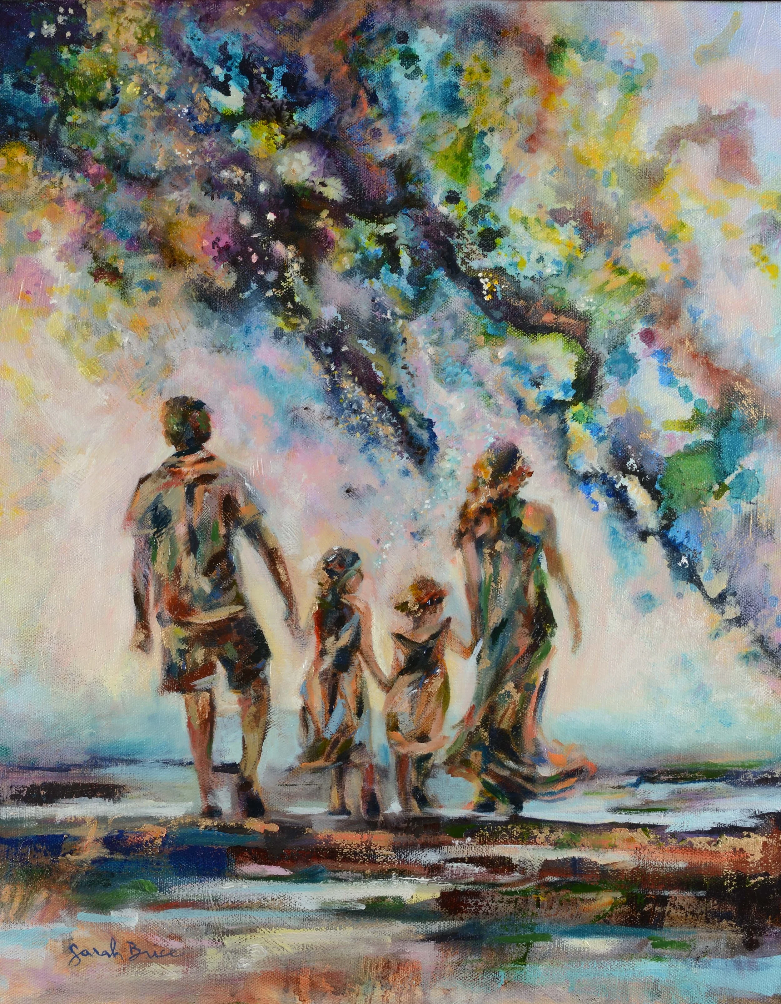 There are some moments you wish would last forever. They sit like silent stars in the cosmos of memory, waiting patiently for us to return. Through ink splatters, layered brushstrokes and luminous color, this painting seeks to hold one of those suspended instants: a loving wish, a quiet corner of light, time spent together as a family.